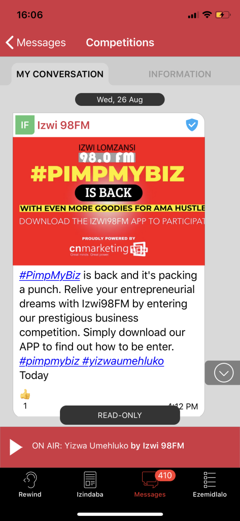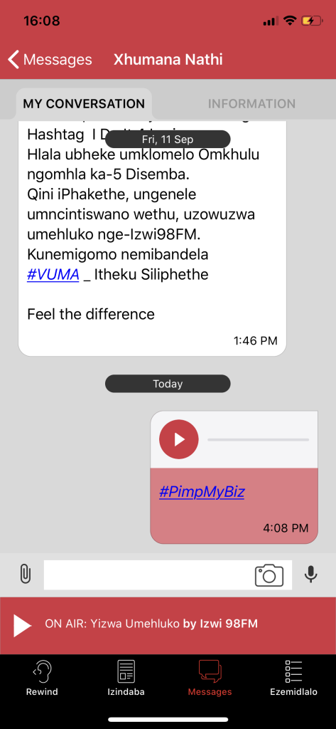 More specifically, in the case of this story, it relates to Izwi LoMzanzi’s direct engagement with over 20 000 of those listeners who have downloaded the station’s app on their smartphones.