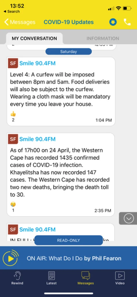 Through a dedicated messaging channel within their mobile app, they supplement news broadcasts with timely, relevant and factual COVID-19 updates that contain an added focus on the Western Cape province.